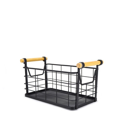This stylish metal basket features integrated wood handles and is perfect for all types of kitchen, bathroom and office storage.