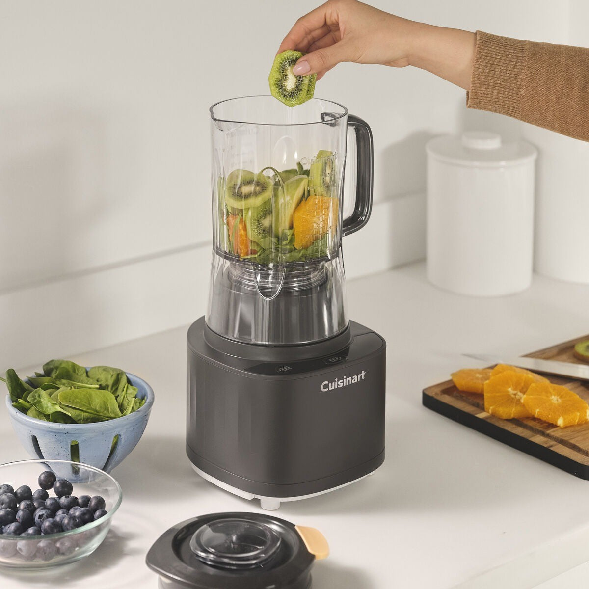 With the Cuisinart Soho Blender, all you need to do is add your preferred ingredients to the 36oz jar, secure the lid and press "Blend" or "Pulse."