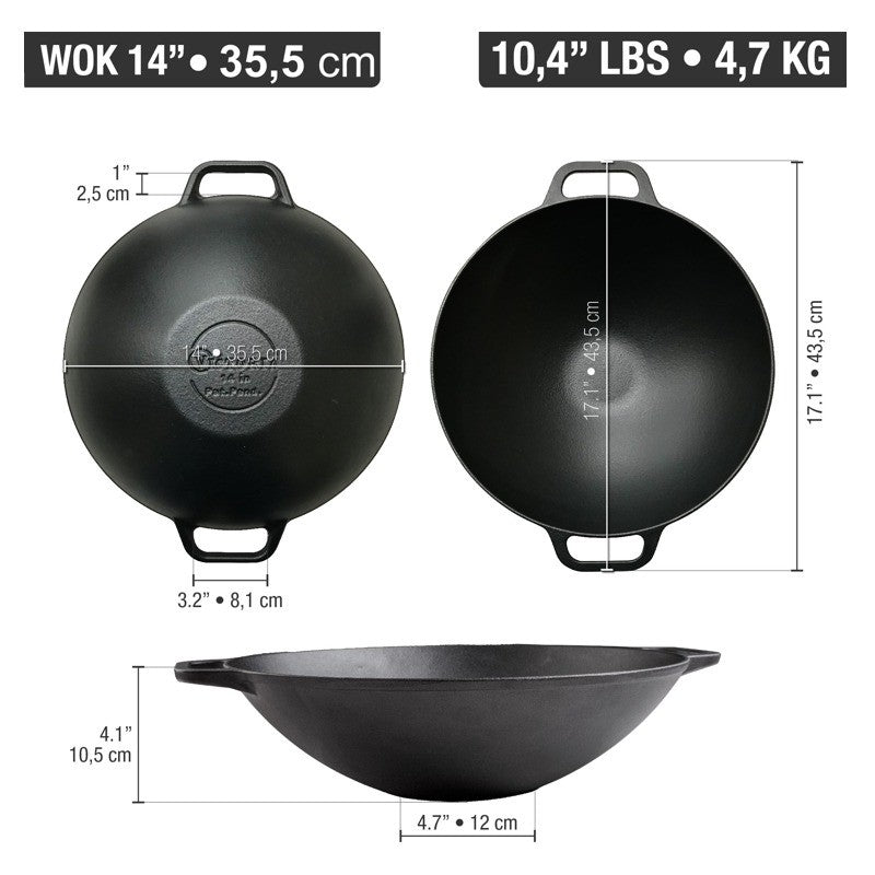 The Wok features a wide flat base, double loop handles and is designed for optimal heat, steam and moisture flow for evenly cooked food. Perfect for stir fries, grilled vegetables, deep frying and more.