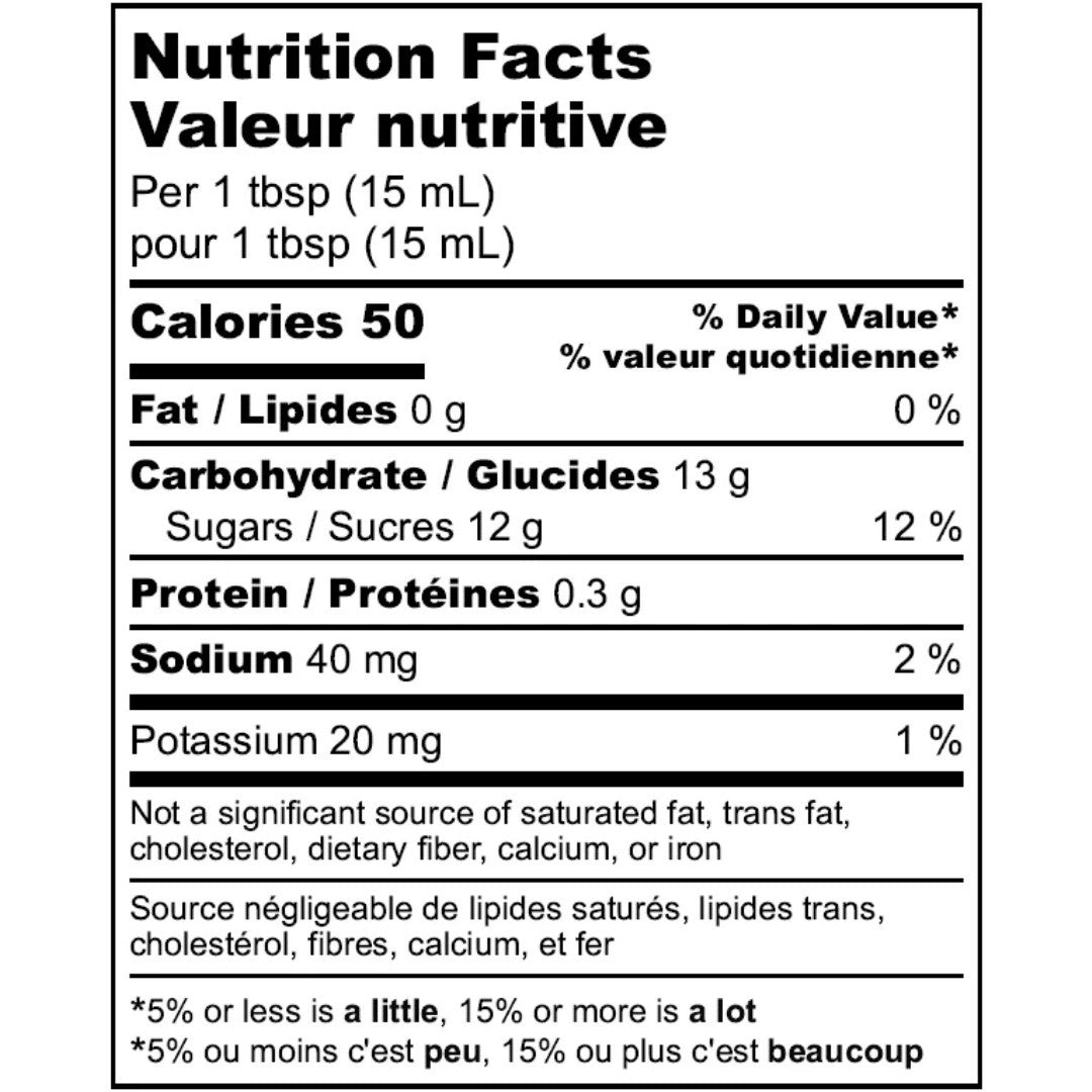 Sugars (cane sugar, brown sugar), Onions, Apples, Maple syrup, Apple cider vinegar, Balsamic vinegar (wine vinegar, concentrated grape must, caramel colouring), Bacon (pork, water, salt, sugars [sugar, brown sugar], sodium phosphate, sodium erythorbate, potassium chloride, smoke flavour, sodium nitrate, smoke), Whisky, Pectin, Sea salt, Garlic powder, Natural flavours, Citric acid, Ascorbic acid