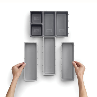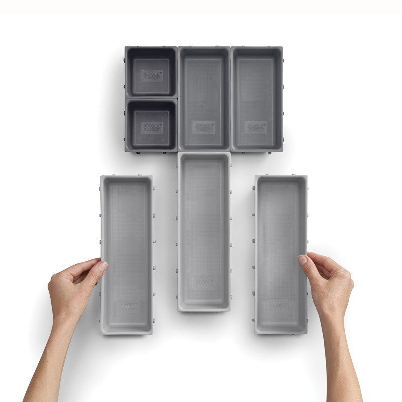 This drawer organizing set includes seven baskets that can be clipped together for a bigger unit, or used individually.