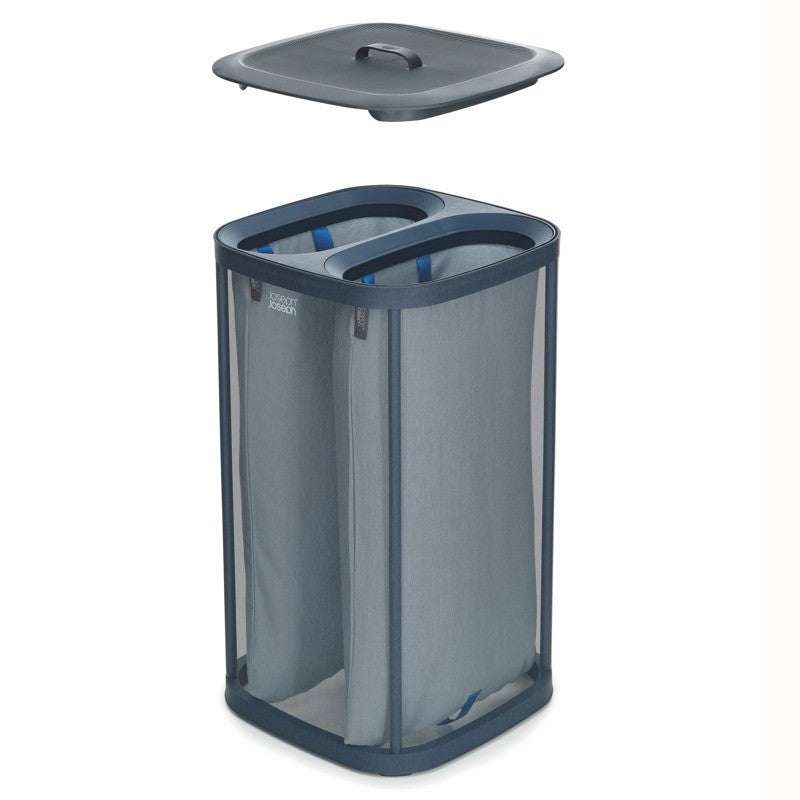 The stylish Tota hamper from Joseph Joseph features two same-sized compartments so you can properly organize laundry by types - lights and darks, clothes and linens. The cotton fabric totes have nylon handles for convenient lifting and carrying to and from the wash.