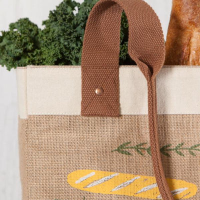 These heavy duty jute bags feature a stylish canvas trim and charming printed decal on the front of it. What's so great about them is that they are genuinely roomy enough to bring home all of your goods from the market in just one trip. The bottom of the bag is even extra stiff to support heavy loads, while an inner pocket is perfect for holding your keys, wallet or phone.