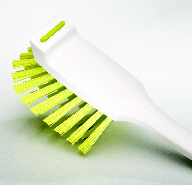 This dish brush features nylon bristles that are gentle on dishes but tough on food grime.