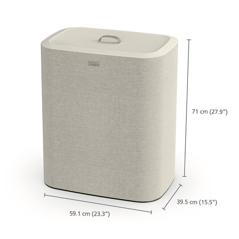 The cotton fabric totes have nylon handles for convenient lifting and carrying to and from the wash. The top of the hamper has a removable lid, while the self-locating rim ensures the totes fit perfectly back in place.