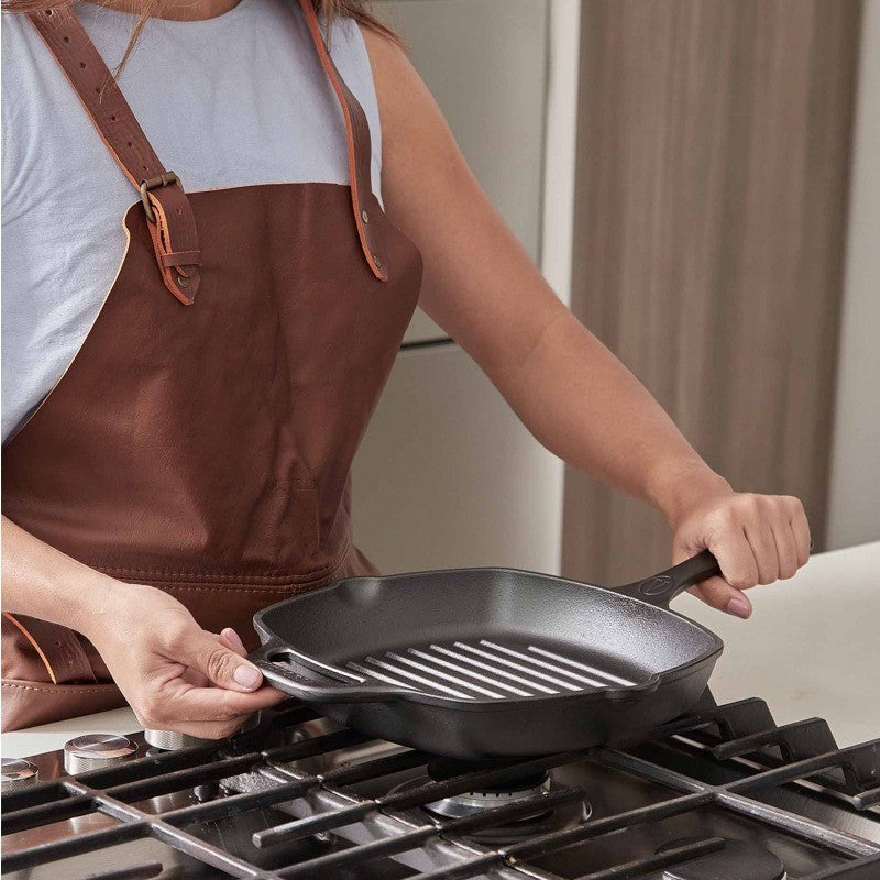 This pan features raised ridges for indoor and outdoor grilling, a drip-free spout on each side and a handy helper handle. It's perfect for steaks, burgers, grilled vegetables, paninis and more.