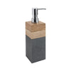Made of resin, this soap dispenser has the look and feel of natural black stone without any of the heavy weight or breakability. It also features a faux wood top side for contrast. This unique design is a great way to add fresh functionality to your bathroom.