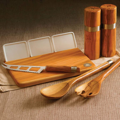 This cheese knife from Berard features a brilliant olivewood handle and a serrated blade that is suitable for slicing into hard or soft cheese. The pick at the tip of the bland can be used for picking up the cheese you slice from the block.