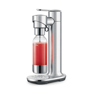 Thanks to the integrated Fusion Cap, this soda maker is able to fizz everything from water or wine, to juice or flat soda. The machine features a fast and easy unique locking system with an ergonomic ring pull feature to secure the bottle. The magnetic stainless steel drip tray prevents unwanted countertop mess and is also easily removable for easy cleanup.