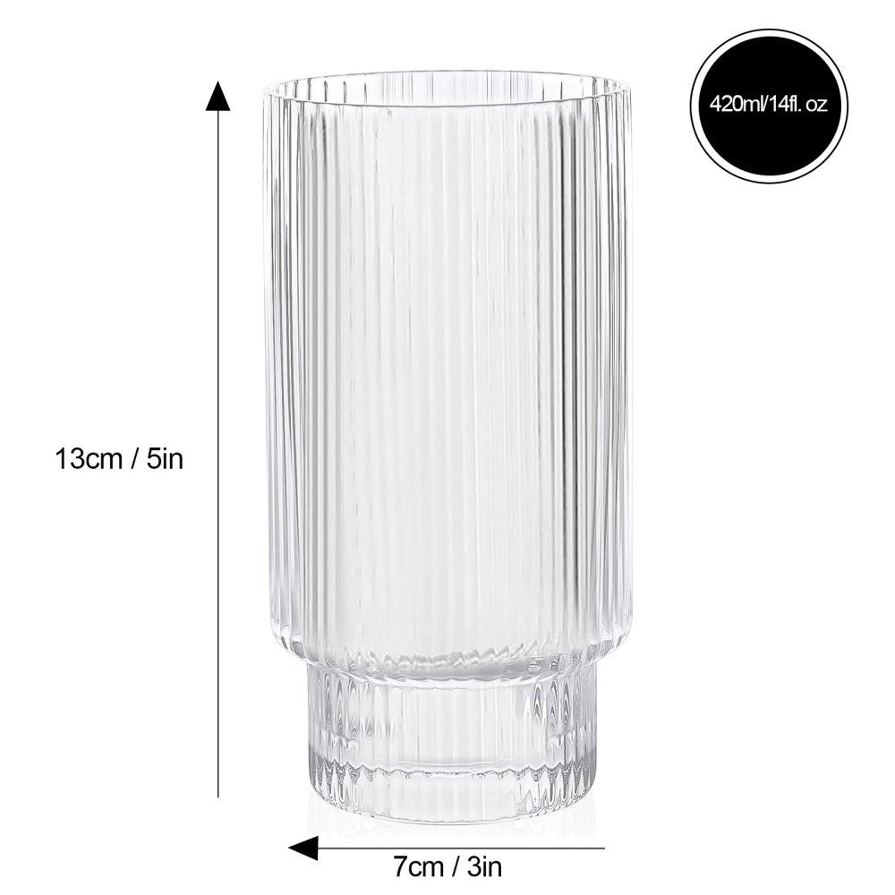 • Highball: 2.75" Dia x 5.1" H / 420ml