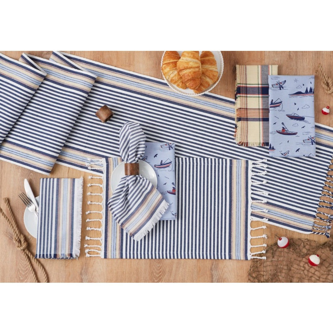 Made of 100% cotton, this reusable napkin features a dominant blue design with a summer breeze feel.
