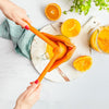 The Fluicer features long handles that create extra leverage for an easier squeeze of your citrus. The integrated seed catcher and contoured funnel at the base of the juicer makes for fast, clean pouring.