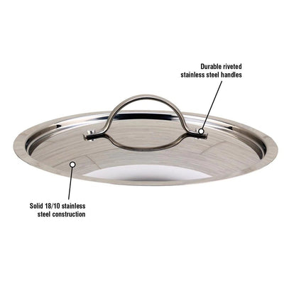 Made in Canada, these lids are crafted from top quality stainless steel and feature a riveted handle that will never loosen or fall off.