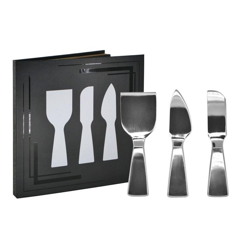 This Natural Living cheese knife set includes 3 knives; one each for cutting into soft, medium or hard cheese. The knives are made of stainless steel and feature rounded handles for easy grabbing.