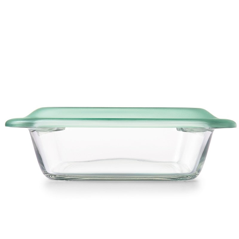 Made of thermal shockproof borosilicate glass and featuring BPA free plastic lid, the OXO Good Grips Square Baking Dish is oven, microwave, freezer and dishwasher safe. The OXO Good Grips Glass Square Baking Dish has a 2qt (1.9L) capacity and measures 8" (20cm) x 8" (20cm) x 2.5" (6.3cm).