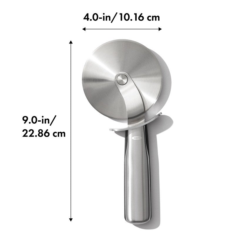 The OXO SteeL Pizza Wheel is the perfect tool to effortlessly slice through home baked pizza. The sharp wheel digs easily into thin or thick crust, while the thumb guard offers better protection than most pizza cutters.